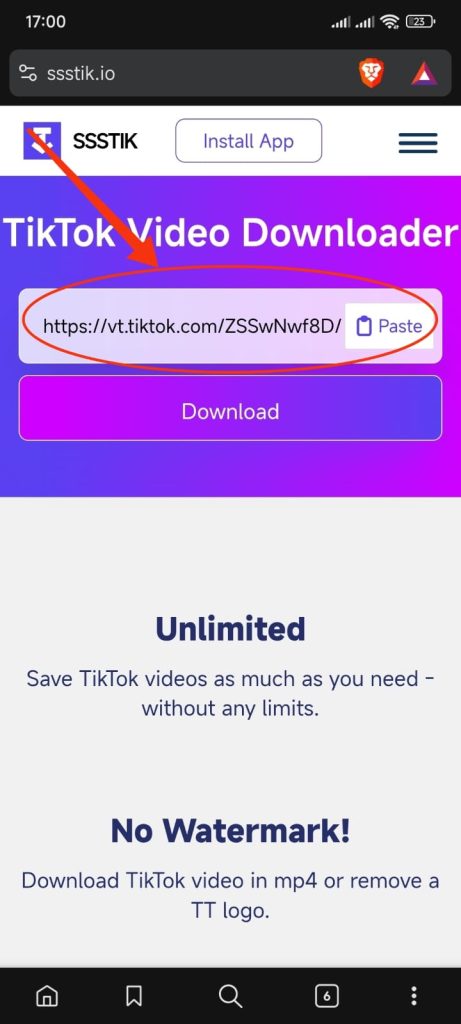 - Di halaman utama SSSTik, tempel link yang tadi kamu salin ke kolom yang tersedia.
